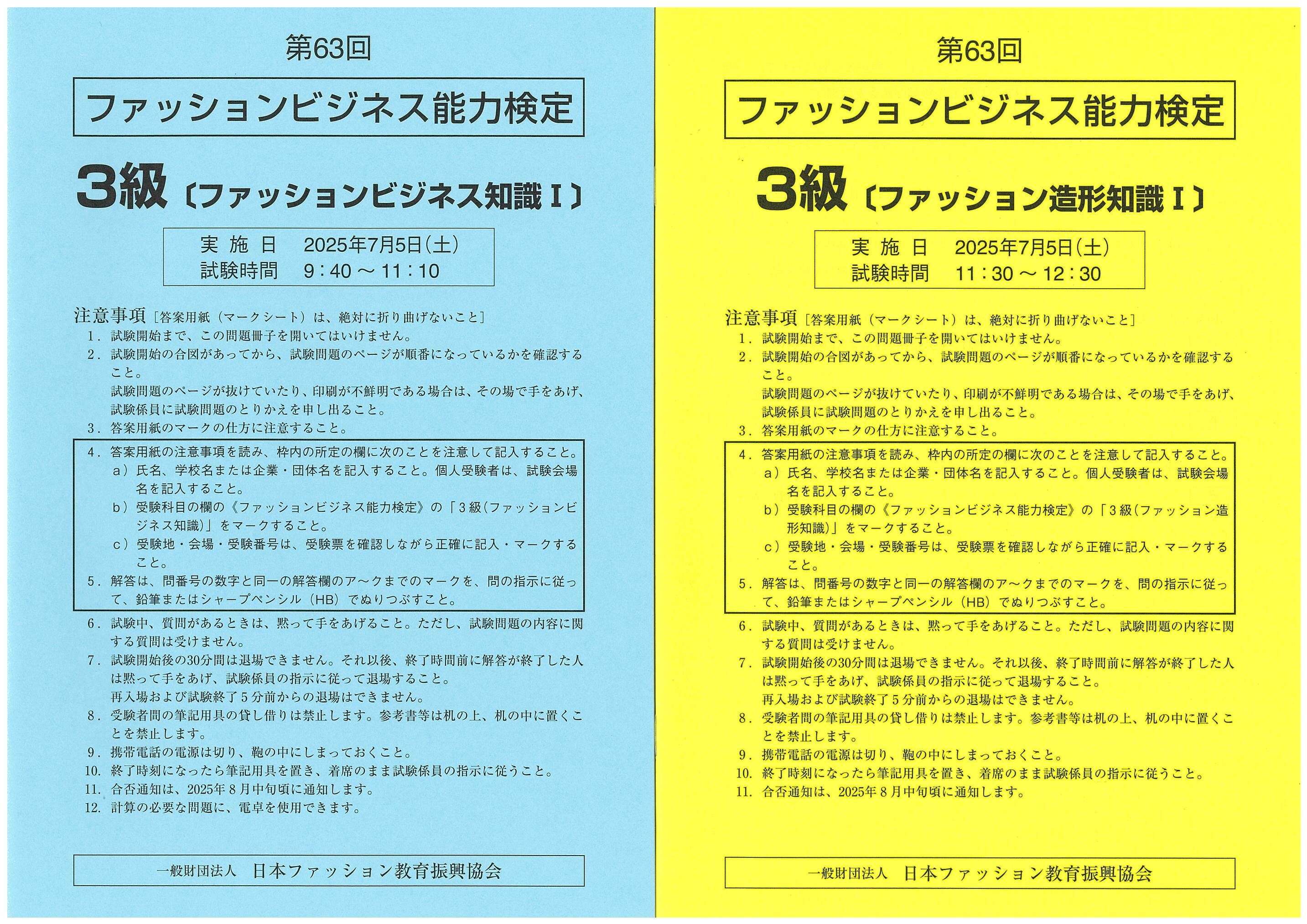 第63回ファッションビジネス能力検定3級 試験問題です。(2025年7月実施)