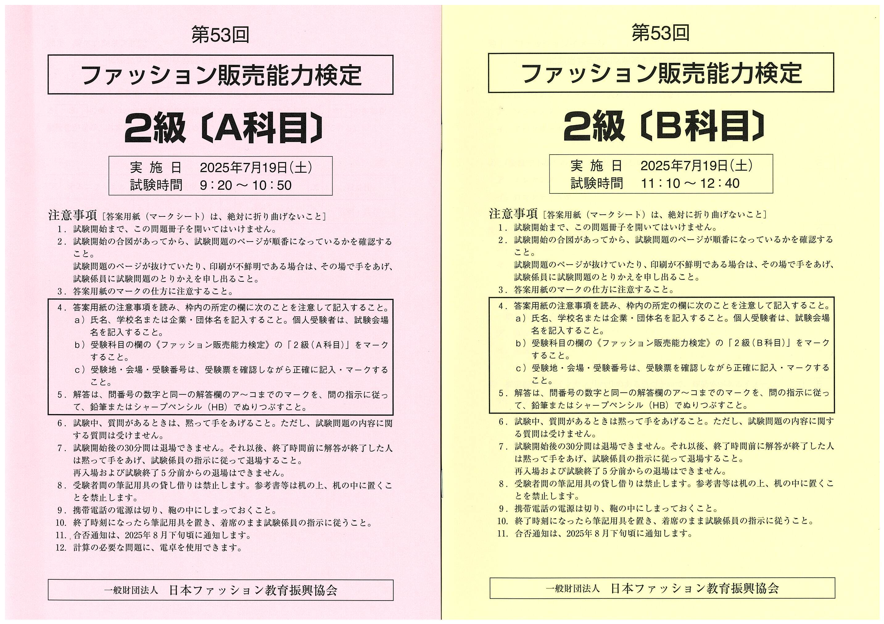 第53回ファッション販売能力検定2級 試験問題です。(2025年7月実施)