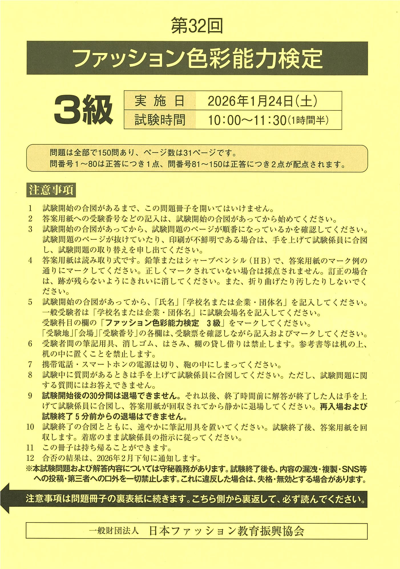 第32回ファッション色彩能力検定3級 試験問題です。(2025年度実施)