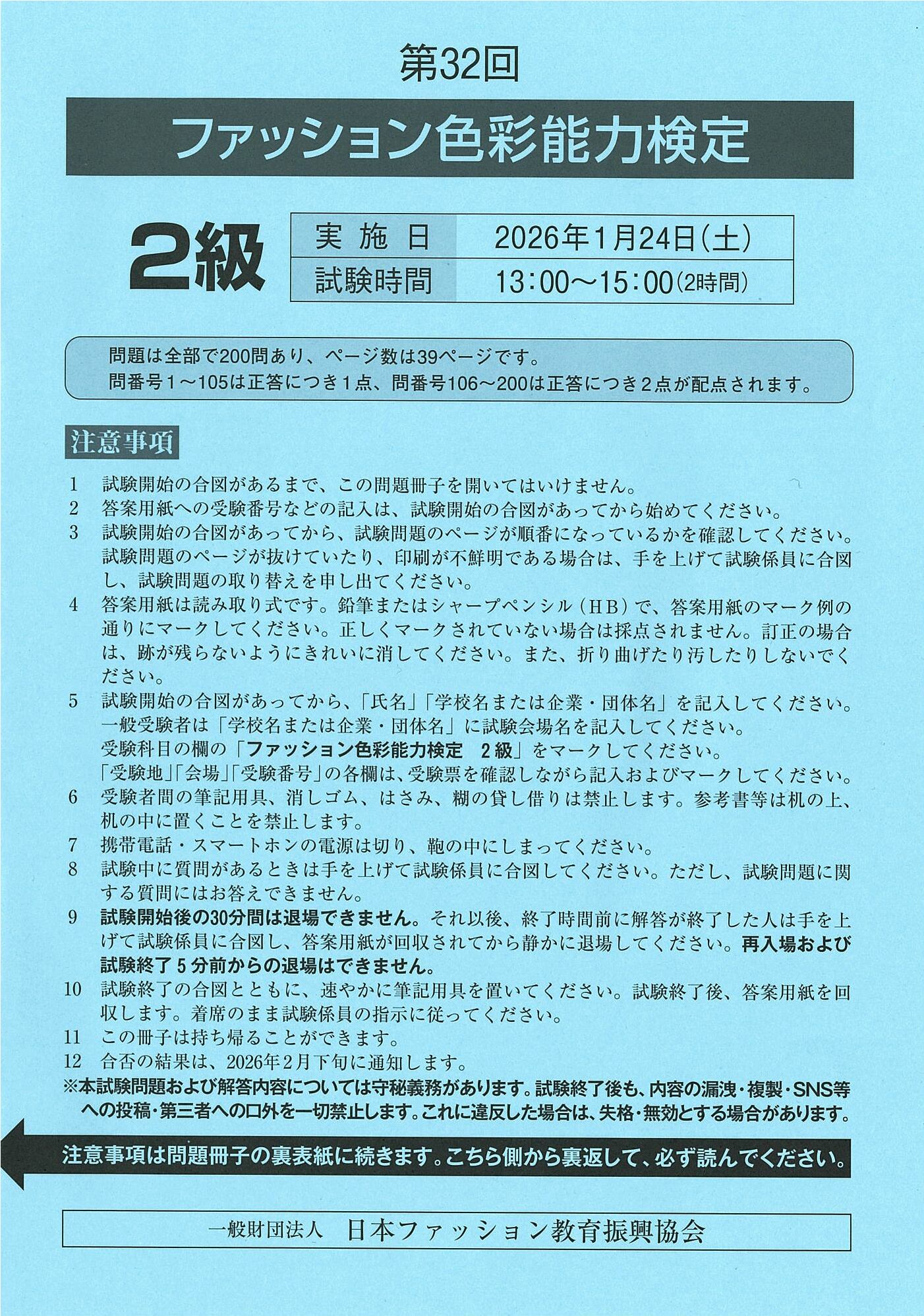 第32回ファッション色彩能力検定2級 試験問題です。(2025年度実施)